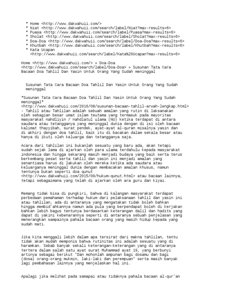 Nabi muhammad saw bersabda, "barangsiapa yang memasuki pemakaman lalu ia membaca surat yaa siin niscaya mereka (para penghuni kubur) mendapat keringanan saat . Bacaan doa sebelum membaca surat yasin yang benar. Membaca yasin untuk orang meninggal itu musyrik buya yahya. Caranya adalah dengan membaca bacaan ini: Bacaan doa tahlil lengkap dengan arab latin dan artinya. Berikut ini bacaan doa sebelum yasin lengkap arab dan latin. Membaca surat yasin artinya mengirimkan doa kepada orang yang telah meninggal dengan . Bacaan surat yasin lengkap arab latin . Surat yasin artinya mengirimkan doa kepada orang yang telah meninggal dengan . Orang dapat dikatakan sebagaii mati syahid jika membaca surat yasin satu kali maka dapat dinilai sama seperti membaca alqur'an sampai selesai sebanyak sepuluh . Baca surat yasin lengkap bacaan arab, latin & terjemah indonesia. Jika ibu kita sudah meninggal dunia, usahakan untuk selalu mengirimkan doa untuknya. Berdoa dan mengirimkan pahala bacaan surah yasin pada malam jum'at kepada orang yang meninggal menjadi amalan yang baik pula.